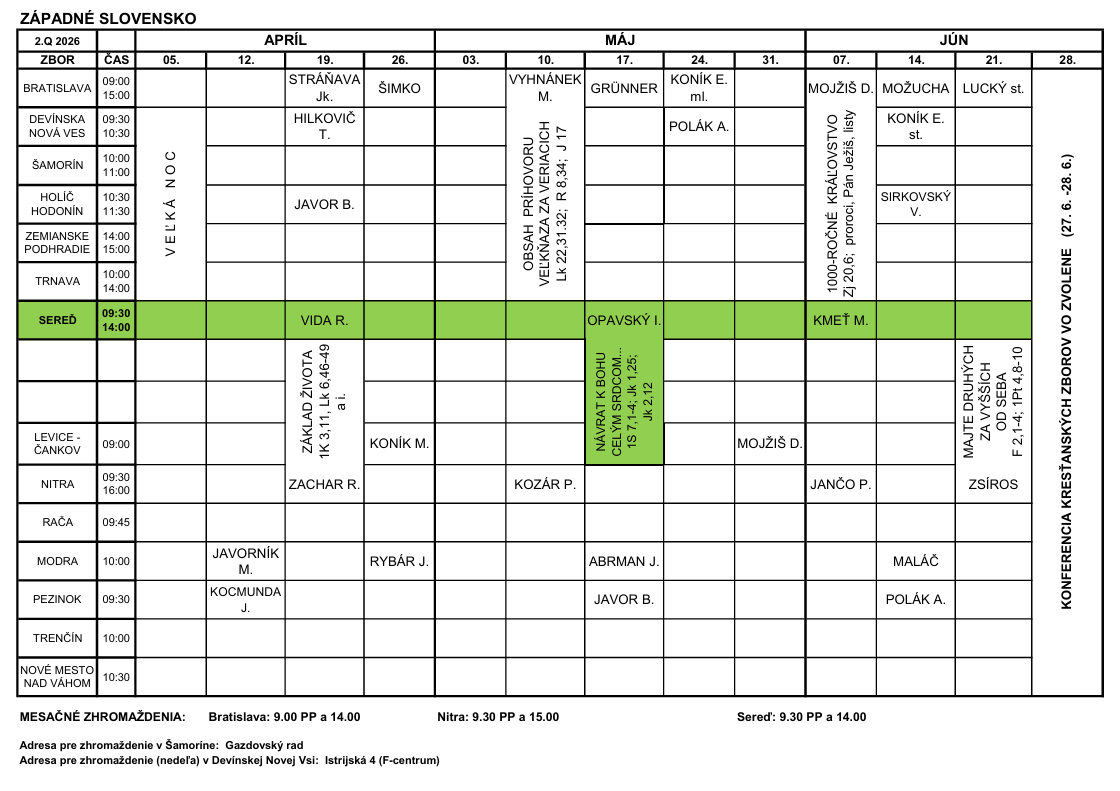 Srdečne vás vítame na stránkach nášho zboru v Seredi a radi vás privítame medzi nami aj na spoločných zhromaždeniach nášho zboru! Schádzame sa pravidelne v utorok, piatok a v nedeľu. Zhromaždenia sú vysielané aj cez YouTube živý prenos. Vysielanie zhromaždení beží vždy v dni a čase zhromaždení. Ak by ste mali záujem dostávať informácie o našom zhromaždení, alebo počúvať naše bohoslužby, môžeme vám pravidelne posielať informáciu e-mailom. Napíšte nám Vašu požiadavku do knihy návštev, alebo e-mailom na :