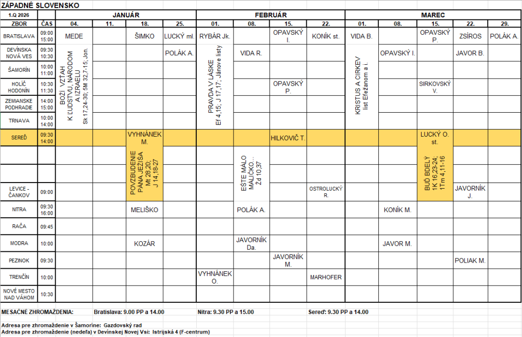 Evanjelizačné zhromaždenie Nedeľa 14:00 – 15:00